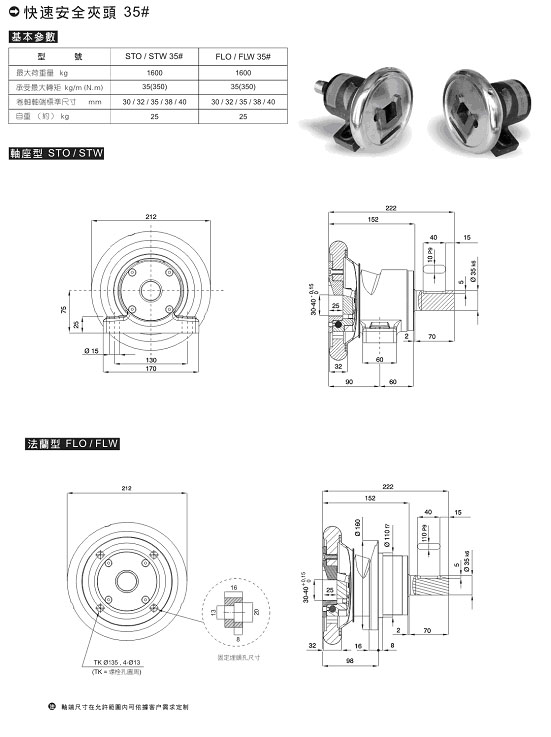 快速安全夾頭是為連續動作的卷軸(氣脹軸)提供快速、準確、簡易、安全有效的連接裝置,避免卷軸在運作過程中松動或旋緊。它可分為軸座式和法蘭式兩種安裝方式,并可選擇各種形式的卡口,配合各種氣脹軸使用。廣泛應用于分條、印刷、復卷、涂布、貼合、制袋、電子電池、橡塑等相關卷取機械行業。